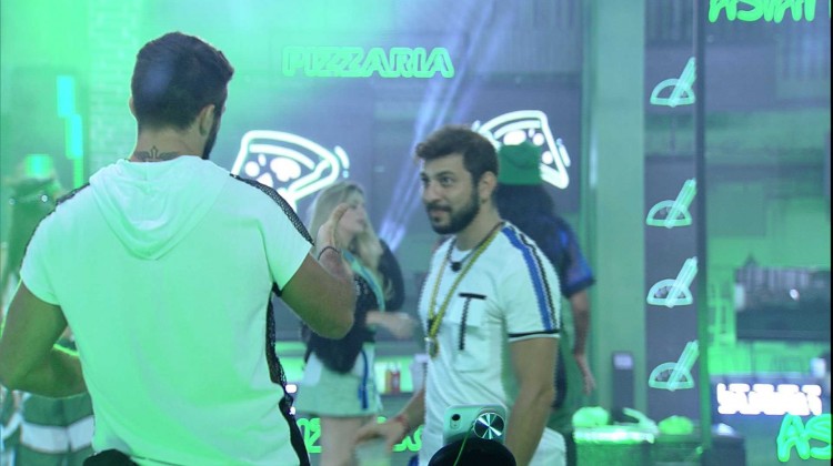 Durante a Festa PicPay no BBB21, Arthur sugere "pagar uma peça" para Caio caso vá ao Paredão e não seja eliminado. "Eu posso escolher dez peças de roupas sua e molhar na piscina. Eu escolho, um dia antes da festa", propõe o fazendeiro.