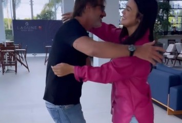 Larissa encontra pai de Bruna Griphao fora do BBB 23