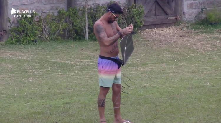 Vale qualquer coisa para passar o tempo no confinamento. Diego Grossi, por exemplo, monta pipas. O peão adora soltar seu brinquedo na área externa da sede.