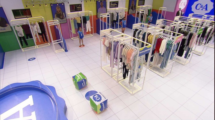"Hoje a Prova do Anjo é C&A e agora além de oferecer looks que combinam com você, a C&A também lança uma coleção cheia de novidades a cada 15 dias. E pra mostrar como é possível combinar varias peças em várias ocasiões, hoje são vocês que vão combinar alguns looks. Como vocês vão jogar a prova: primeiro, vocês vão lançar os dois dados. Quando eles pararem, pode ser um de cada vez, os dois ao mesmo tempo, mas é só lá no final quando os dois pararem que a gente vai olhar o que vocês vão fazer. Você vai depois andar até a arara que o dado mostrou até você, então pode ser pastel, tem outras opções. Se cair C&A é como se fosse coringa, aí você pode ir na que você quiser. Você vai escolher um look nessa arara. Pode ser xadrez, esportivo, pastel. Esse look vai ter um card, só que você não tira ele ainda. Você pega o look e leva até o seu closet. Qual é o meu closet, Tiago? É o que está a minha esquerda. Você vai pegar o look, levar até essa ararinha que está do seu lado e aí você tira o card e mostra pra gente. 10 pontos, 20 pontos, 50 pontos. Serão 5 rodadas, quem tiver mais pontos é o Anjo e ganha 5 mil reais.