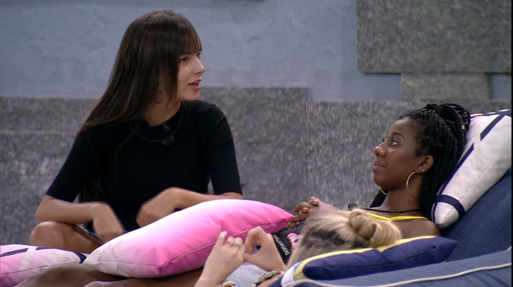 Thaís, Camilla de Lucas, e Viih Tube conversam na área externa do BBB21. As três falam sobre Fiuk e a influenciadora carioca diz para a cirurgiã-dentista: "Você só fala dele". Viih Tube repete o comentário e comenta que a sister só repara em algumas situações dele porque está "mexida".