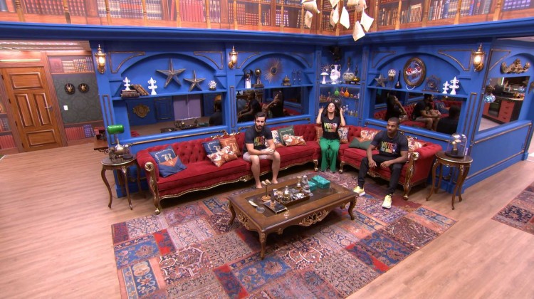 Davi, Isabelle e Matteus são surpreendidos com uma camiseta personalizada no BBB 24. Tadeu Schmidt entra ao vivo, anuncia a novidade e pede para que os finalistas digam: "Qual o principal motivo para você ser campeão do BBB 24?".