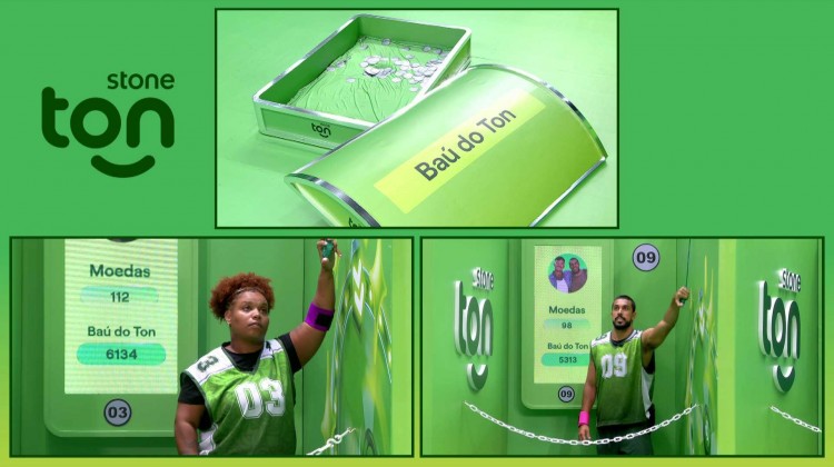 As duplas estão em ambientes separados, cada um com uma função. No Provódromo, um participante conta as moedas que caem a cada rodada. Quem chegar mais perto do gabarito libera a ação do parceiro.