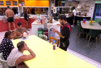 Na cozinha, Mateus conta para Thamiris e Diego que teve um pesadelo sobre a casa do BBB 25. Será q...