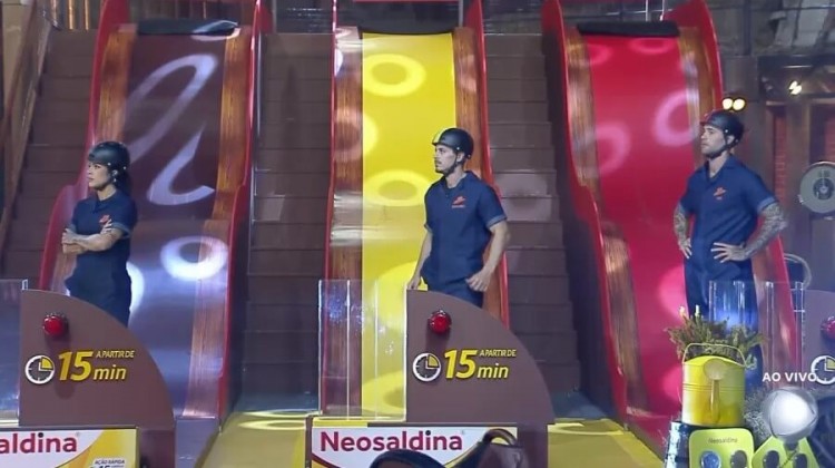 A disputa aconteceu em duas etapas. Na primeira, ele precisavam de pontaria e força para atingir o alvo de acordo com sua cor. Já na segunda parte, eles tiveram que colocar bolas em uma bandeja e descer pelo escorrega, equilibrando-as.