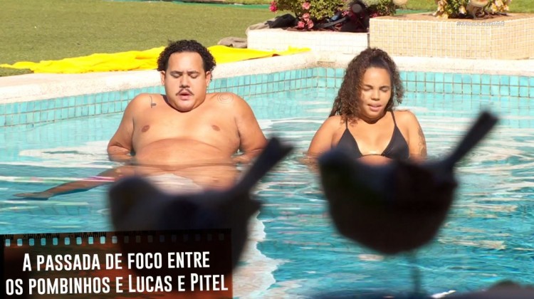 A cena mais recente que ganhou elogios dos espectadores foi a sacada que o câmera teve quando e curtiam um solzinho na piscina. Em determinado momento, o foco passou dos dois participantes para duas estátuas de passarinhos do jardim. Ah, esses pombinhos...