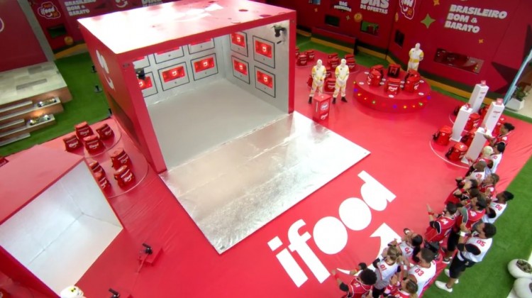 "A prova de hoje acontece em duas fases. A primeira é em duplas, com tomada de tempo, daquele jeito que vocês conhecem. Vai ser um jogo de agilidade, atenção e uma dose de sorte. E sabe onde a disputa vai acontecer? Dentro da bag do Ifood", explica Tadeu.